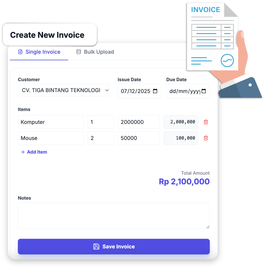 Kirim Invoice yang Profesional dan Terperinci, Tingkatkan Efisiensi dan Keamanan Pembayaran.