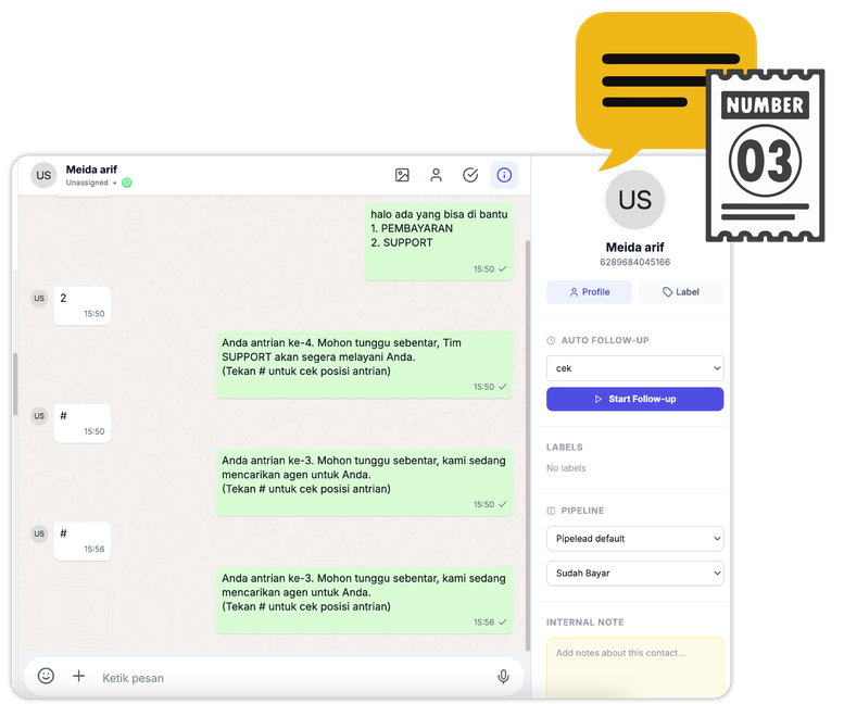 Buat Mode antrian dengan bantuan AI & Jawab nomor antrian.