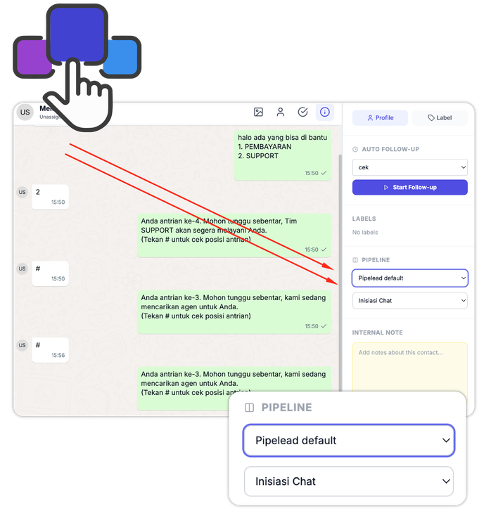 Balas pesan dengan sisipkan info nomor antrian