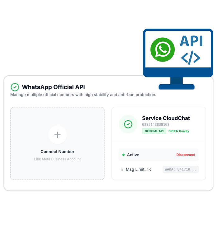 Hubungkan WhatsApp API dengan Mudah dan Integrasikan dengan Sistem Bisnis Anda.